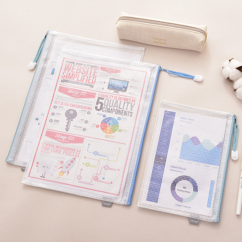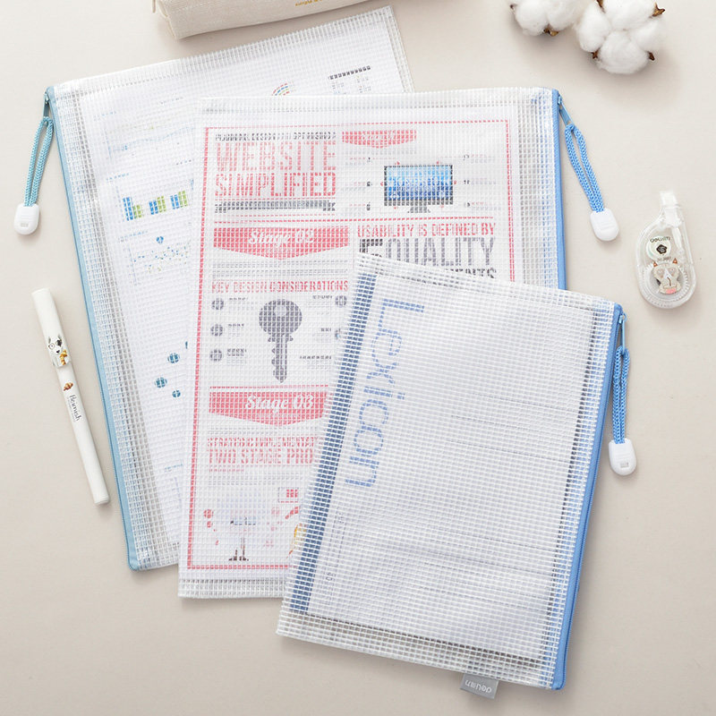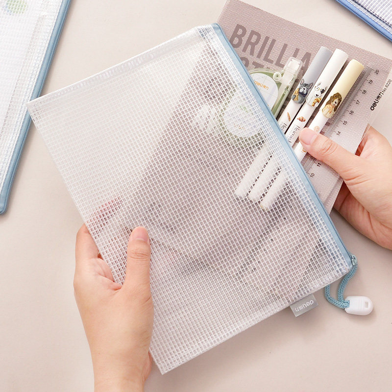 Deli document bag Transparent A4 file bag Grid zipper bag Folder Stationery bag Office supplies information bag Paper storage bag Plastic tutoring bag Student exam bag Ticket bag for men and women