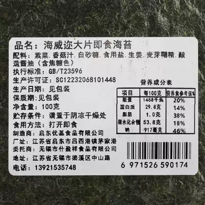 Haiwei large pieces of ready-to-eat seaweed 100g original roasted Laver large pieces of delicious and inexpensive dormitory snacks