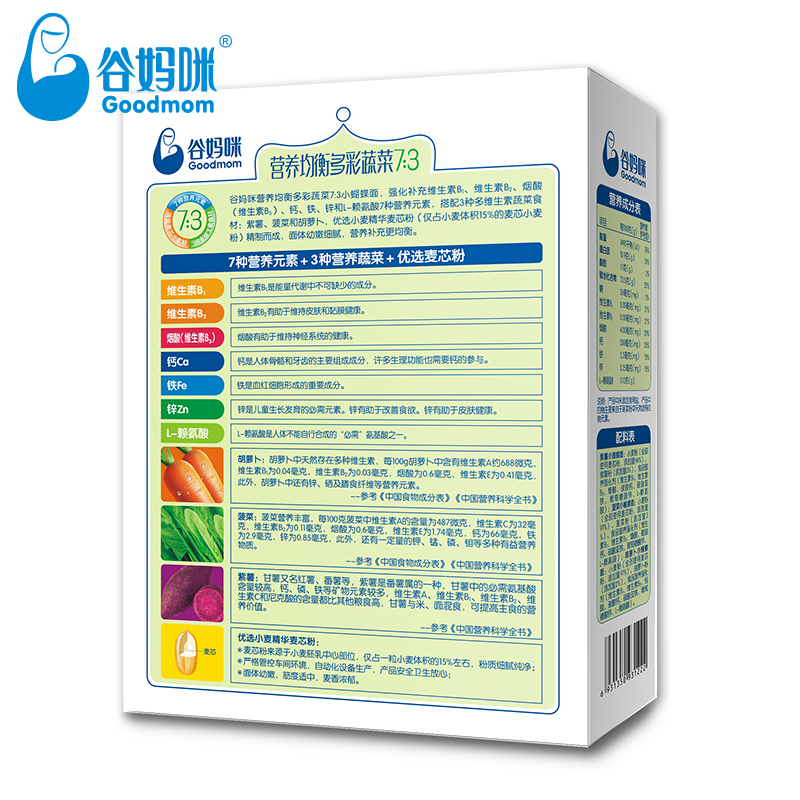 Gu Mommy Baby's face colorful vegetables small butterfly surface 120g*1 box without adding salt baby supplements