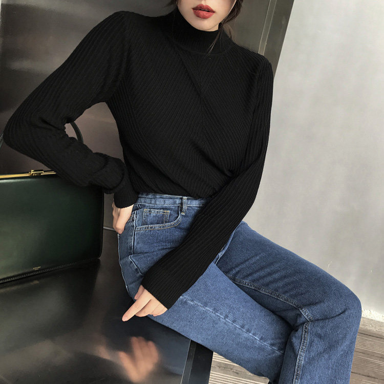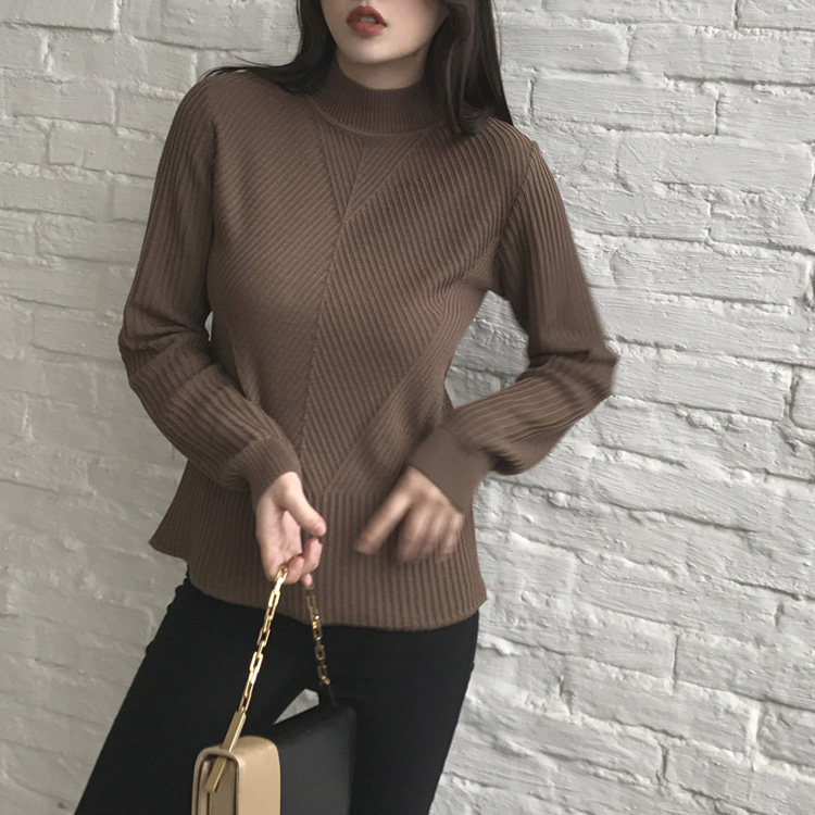 (LAMOBO exclusive @ special) 100% Beautiful slave full wool solid grain semi-high collar sweater