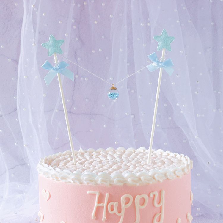 ins style cake decoration blue pink stars glass Xu wishes ball pendant sweet table cake decoration inserted flags