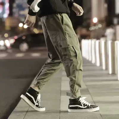 Hong Kong Chao Brand Spring and Autumn Hong Kong style tooling pants men's fashion large size loose straight casual Joker pants