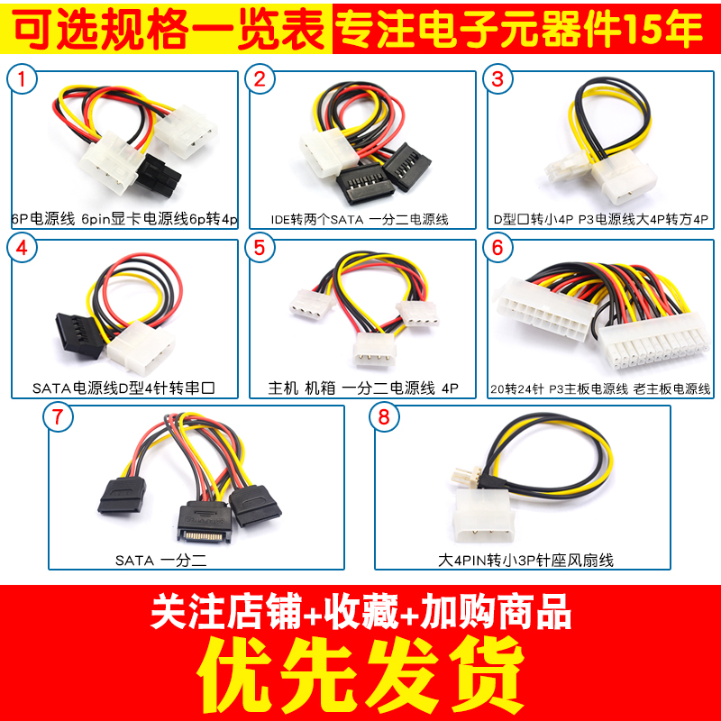 6P power cord 6pin graphics card power cord 6P to 4P SATA power cord SATA to IDE power cord SATA one-two power cord SATA one-two power cord