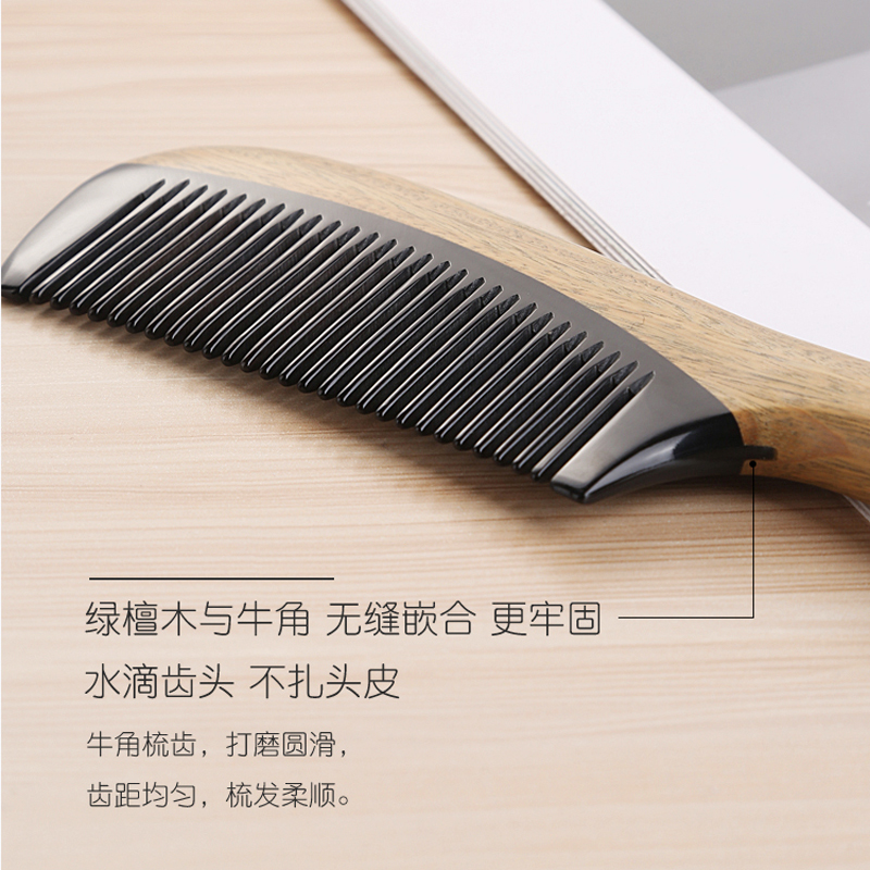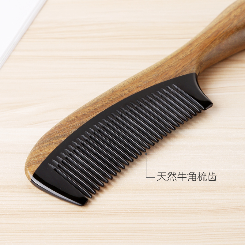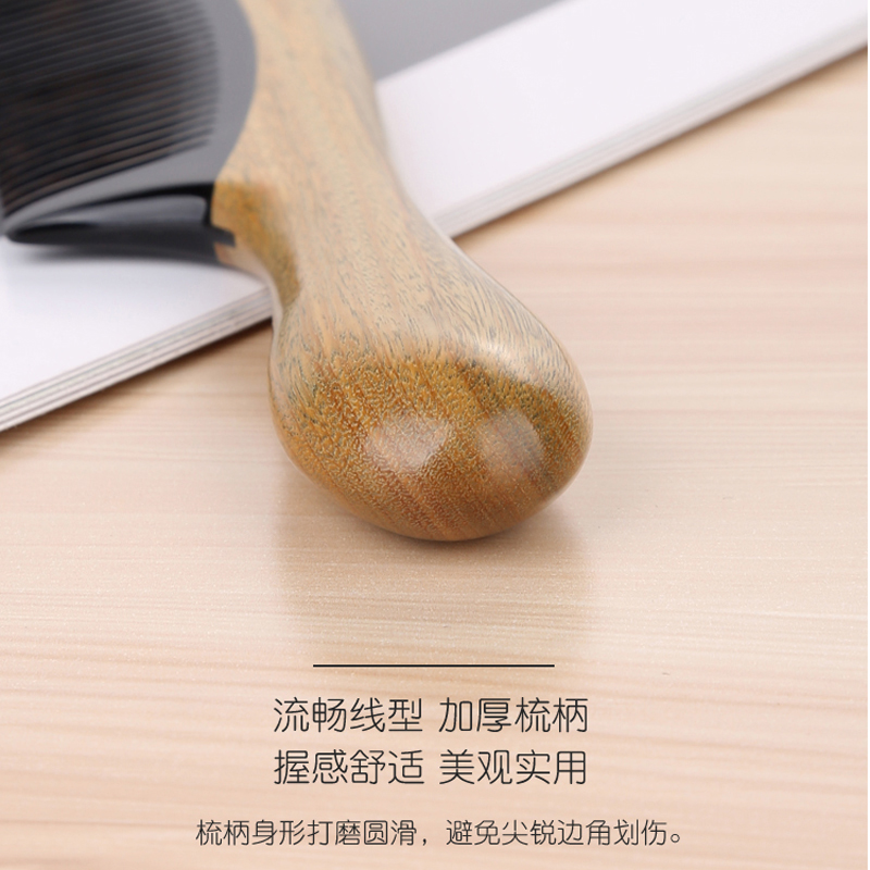 Natural sandalwood comb household with horn comb thicker engraved anti-static portable head massage comb