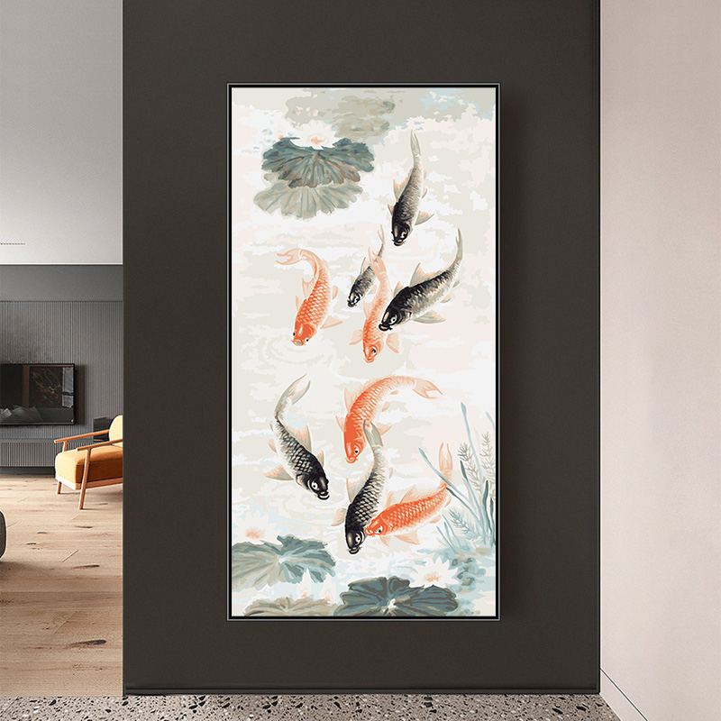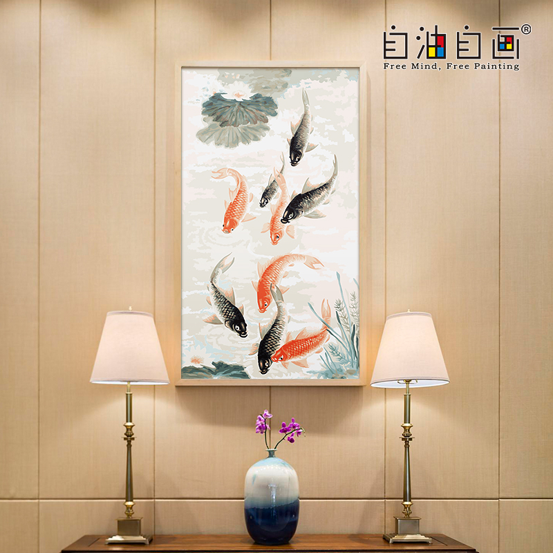 Self-painted digital oil painting diy coloring hand-painted oil painting porch Chinese style filling decorative painting nine fish map