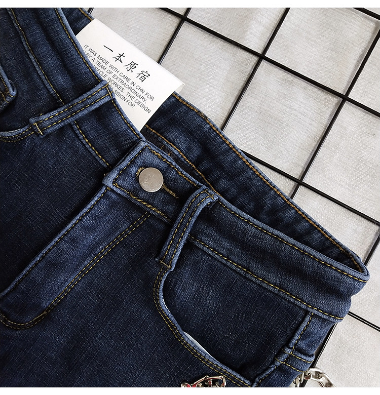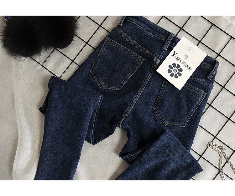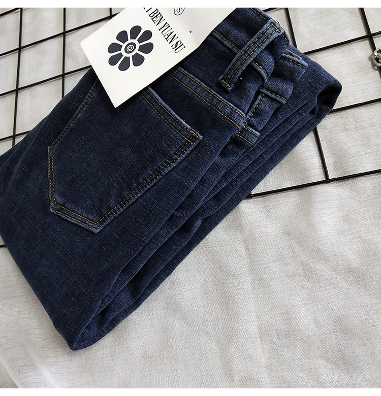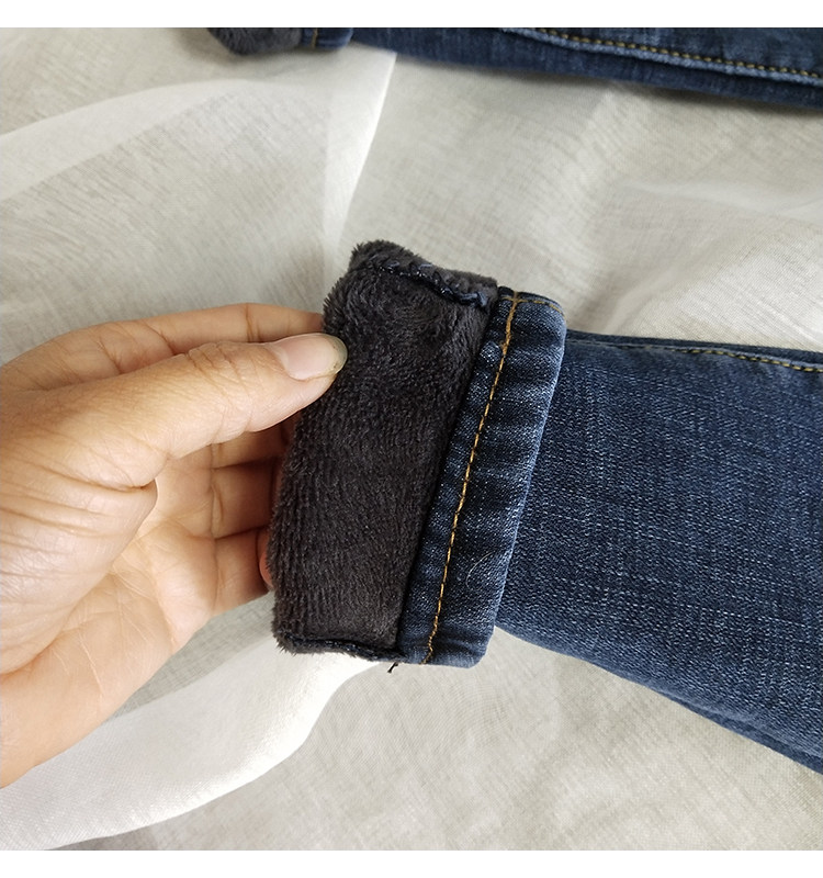 South Korea Dongdaemun Winter Gardown thickened Deep blue High waist jeans Women tight elastic warm cotton pants small leggings-Taobao