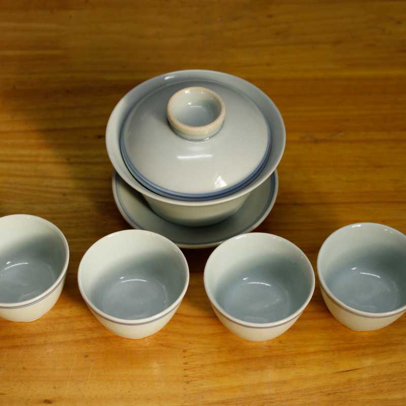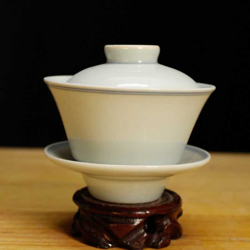 Jingdezhen blue edge double wire three-only cover bowl Kung Fu tea tea tea cup full set for home drinking tea factory stock Out of stock