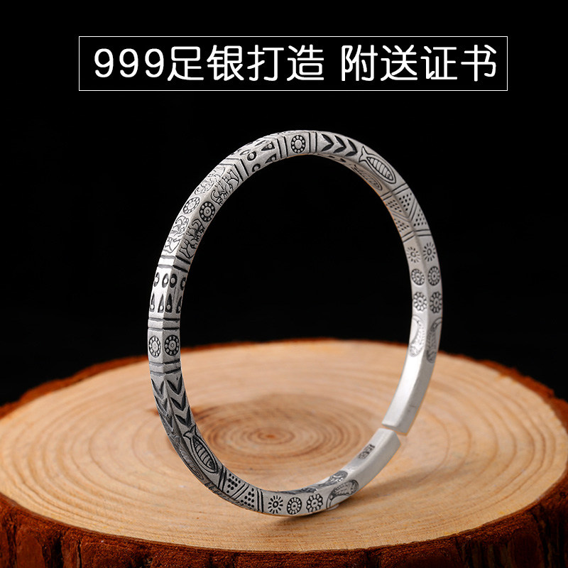 Luo Tai old silversmith 999 sterling silver bracelet men ladies fashion couple a pair of sen retro national style foot silver bracelet