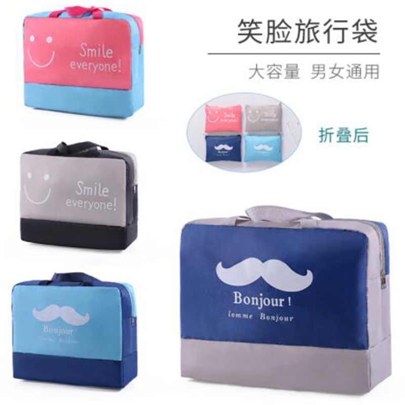 New Smiley Face Beard Travel Bag Luggage Bag Woman Hand Large Capacity Light Super Fire Folding Sleeve Lakhand Luggage