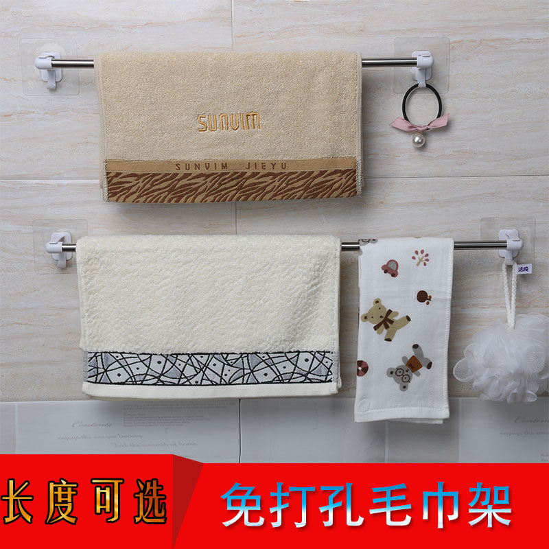 Powder room towel rack without punching suction cup type strong adhesive bathroom kitchen towel hanging stainless steel single rod