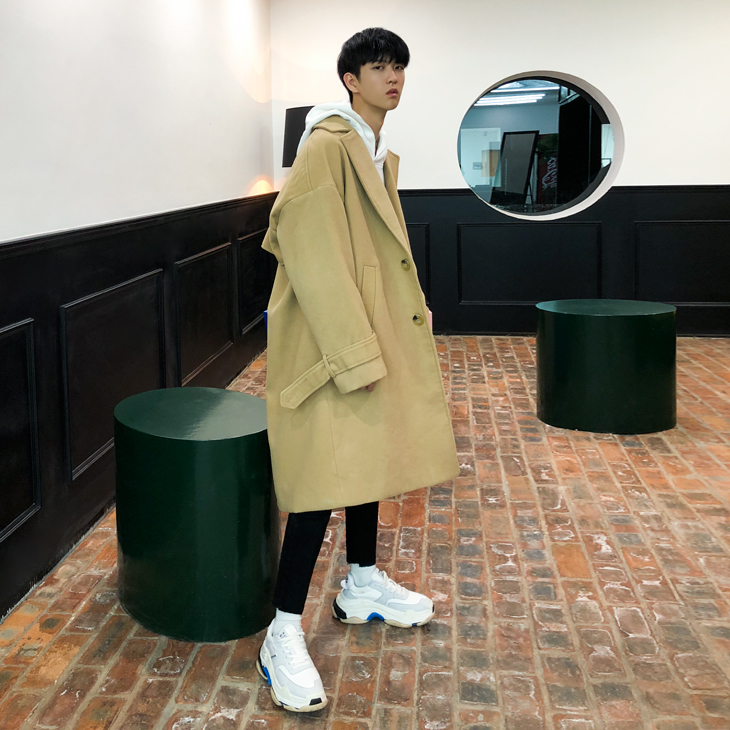 MRCYC windbreaker men's medium and long version new thickened Korean ins fashion woolen coat Japanese winter coat