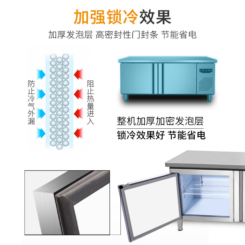 Stainless steel refrigerated workbench freezer commercial console fresh-keeping double temperature freezer kitchen refrigerator flat cold freezer