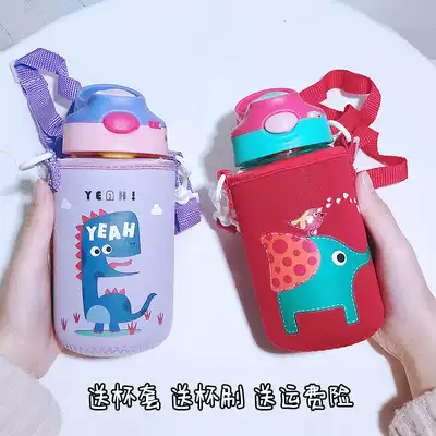 Red little elephant straw glass send Cup brush cup set dark blue dinosaur straw glass send Cup brush cup set yellow lamb straw glass send Cup brush cup set Blue Lion