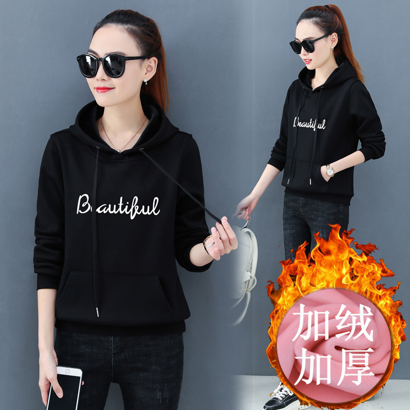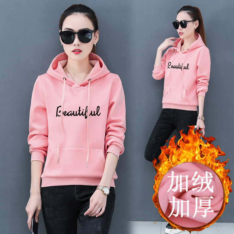 Long-sleeved fleece sweater women's 2022 new autumn and winter Korean version of loose letters student thickened Hong Kong style hoodie jacket