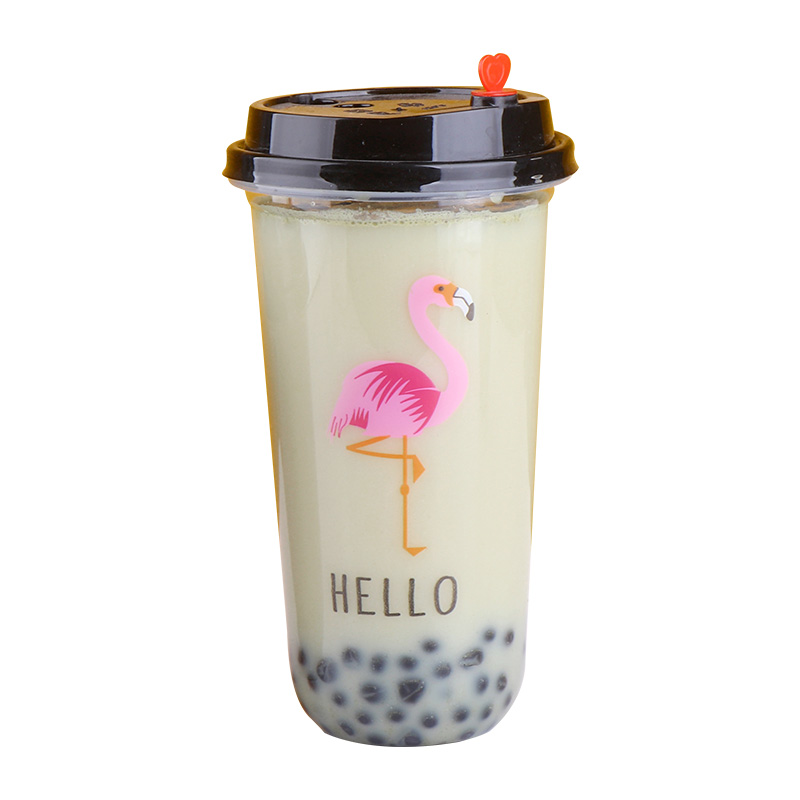 95 caliber flamingo fat cup net red u-shaped disposable milk tea cup custom with lid dirty drink plastic cup