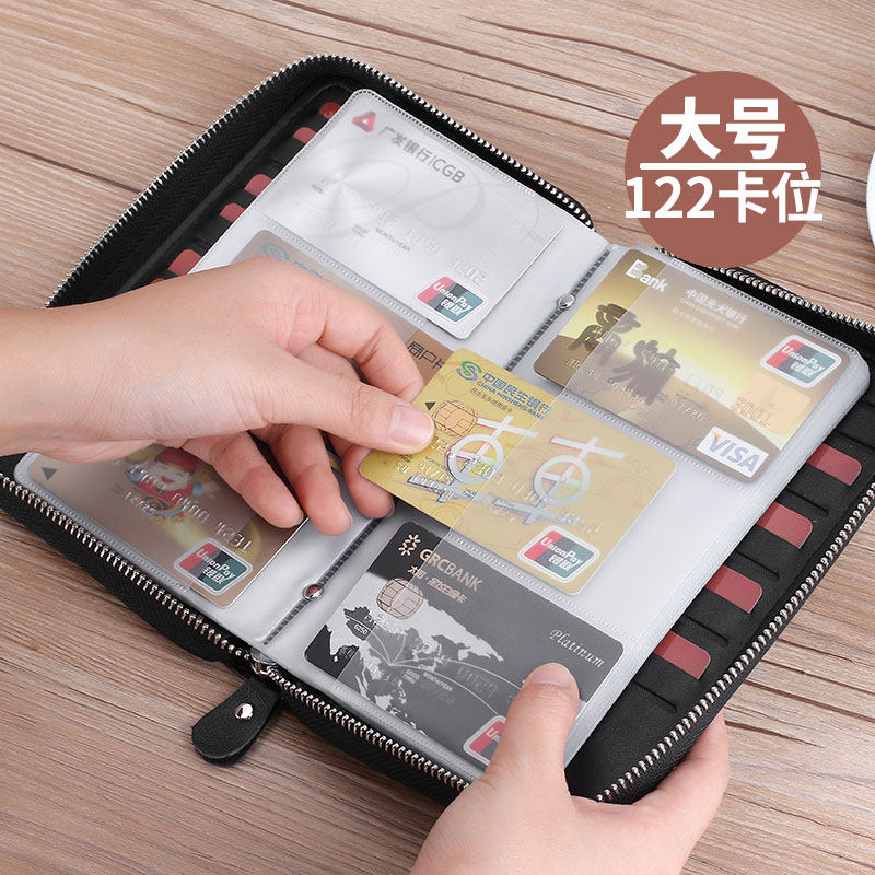 Large capacity card bag men's genuine leather 20 card bag women's multi-card slot cowhide anti-theft brush put card holder small zipper