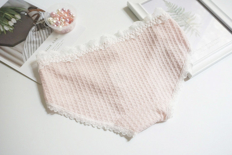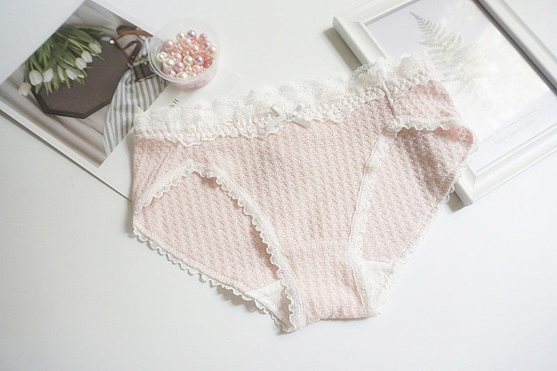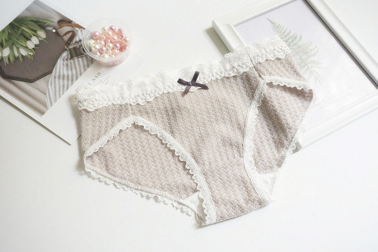 4 pairs of Sen women's cotton comfortable girl briefs Lace cute bow underwear with a low waist