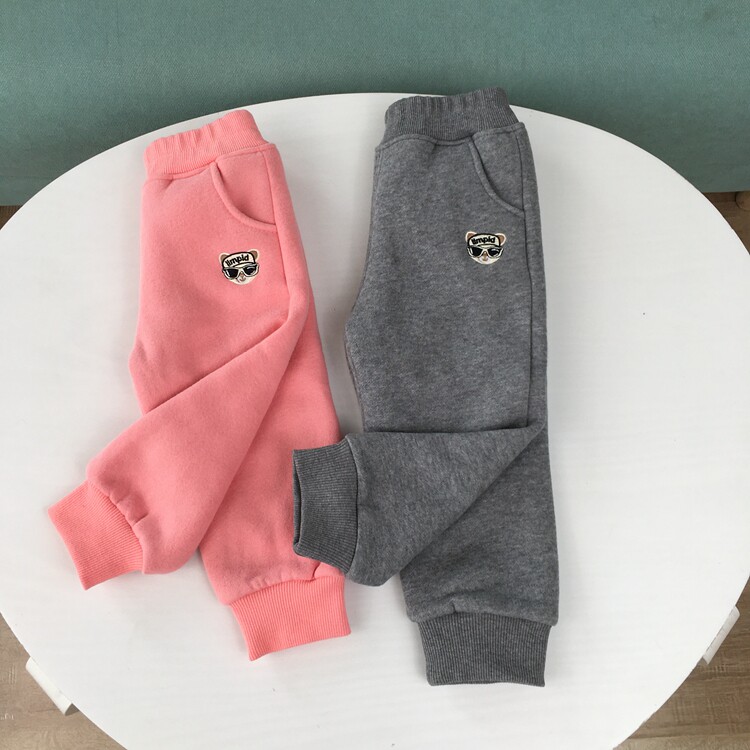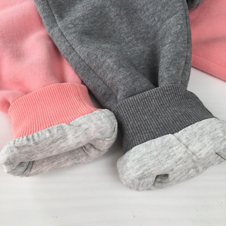 80-120 children with velvet with cotton lining pants Men and women baby double-layer casual pants foot one-piece velvet autumn and winter
