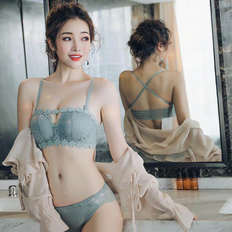 Sexy lace lingerie set Girl without rims gather thickened beauty back bra to collect a pair of breasts on the small bra