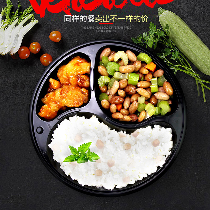 Disposable lunch box Two-grid three-grid four-grid rectangular plastic lunch box Lunch box Fast food delivery packing box thickened