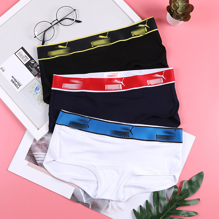 Pure cotton women's underwear small flat angle sexy large size solid color medium low waist wide edge embroidery Neutral LES sports simple