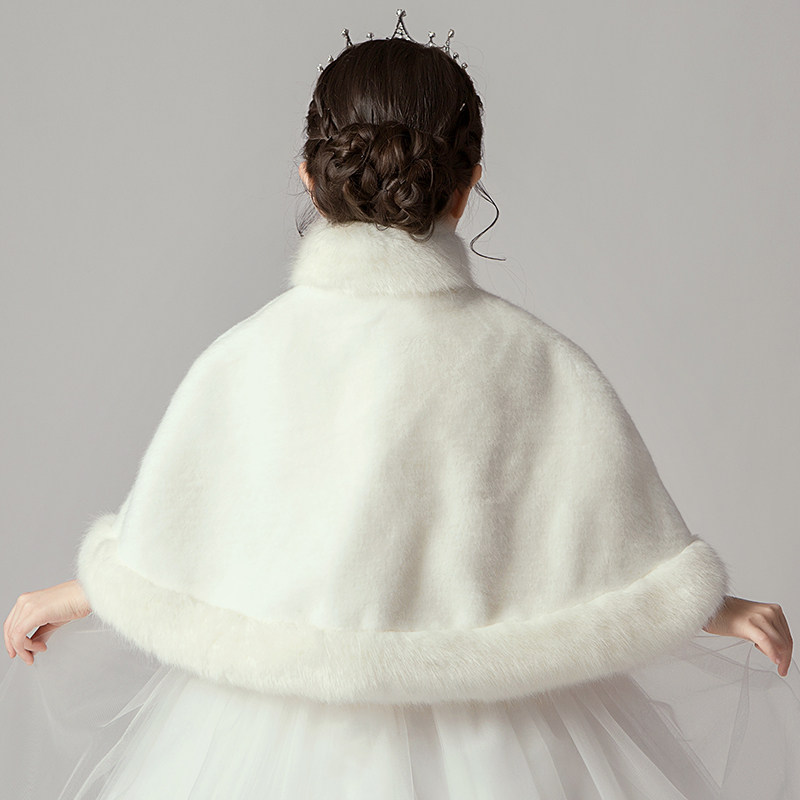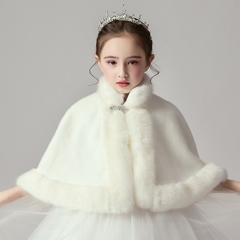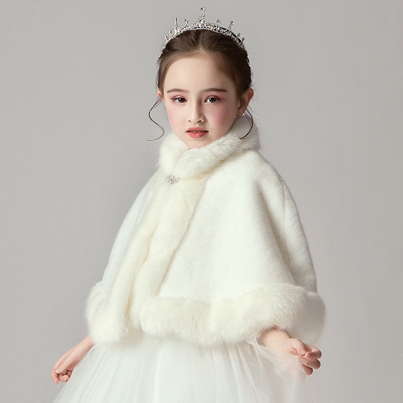 Girl Glint Thickened Warm Princess Dress Fur Cloak Shoulder Little Flower Long Sleeves Cloak Children Out Cloak Coat Winter-Taobao