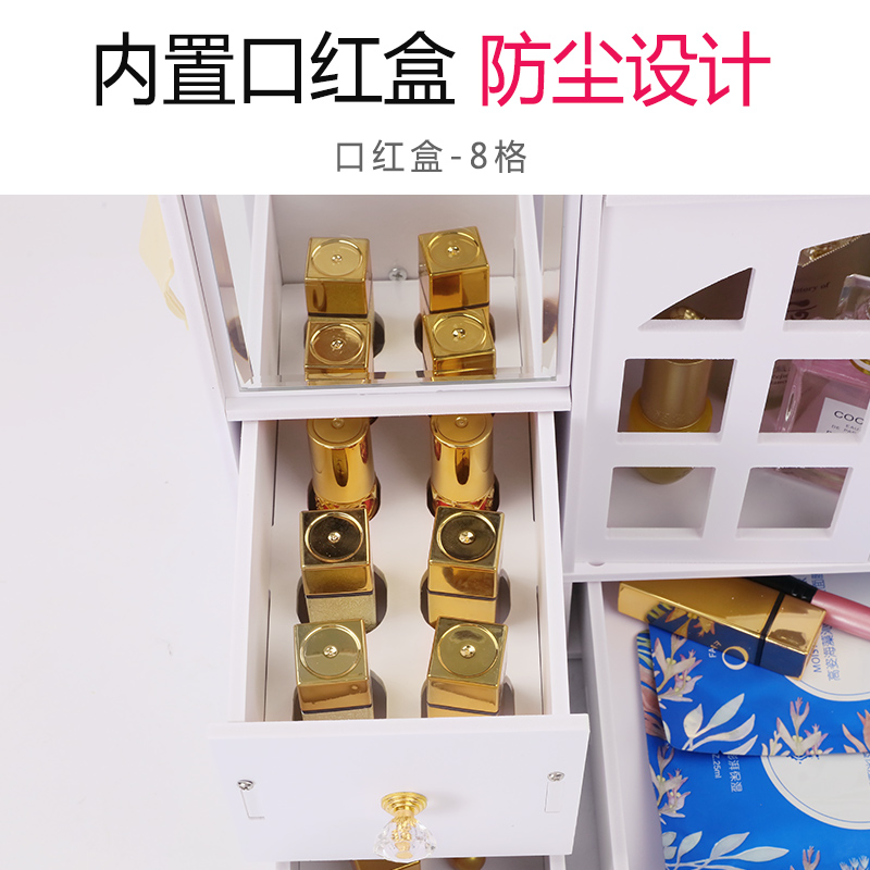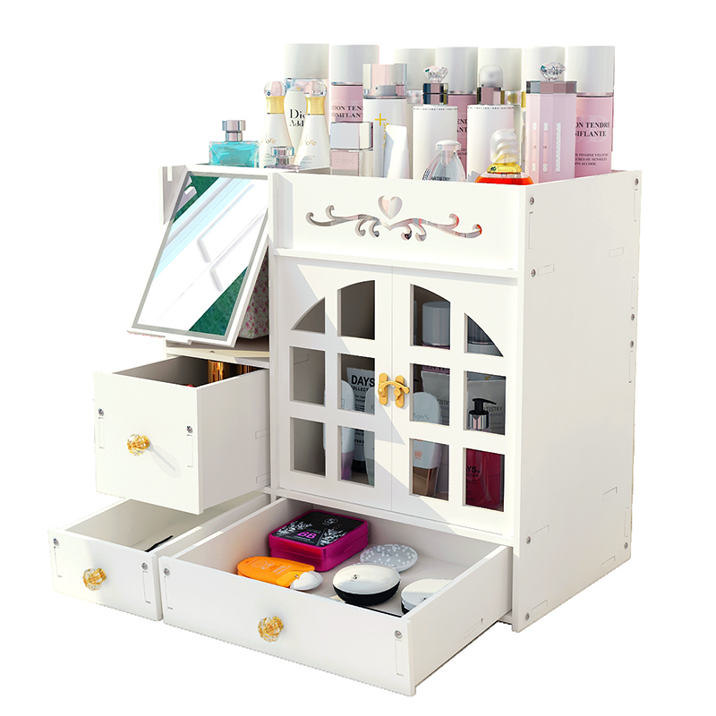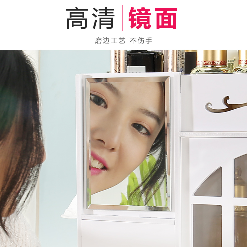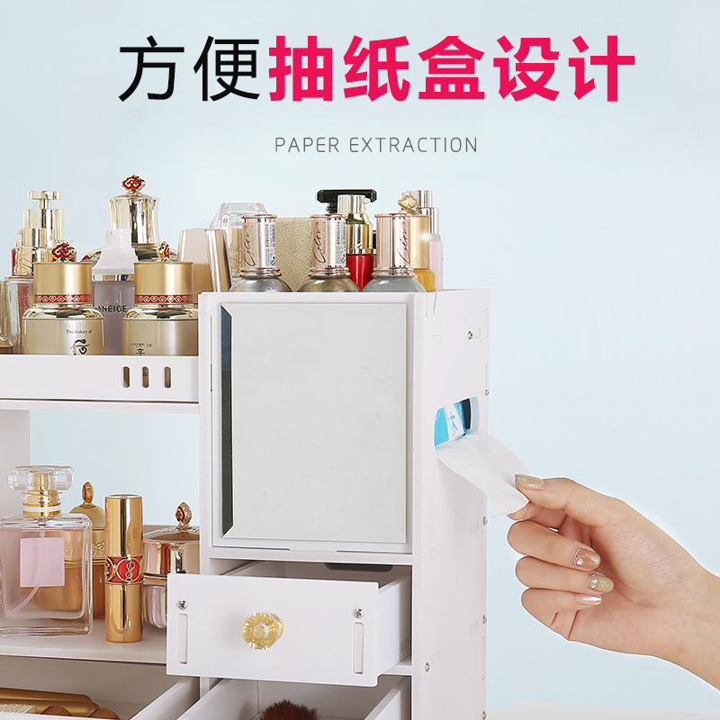Dustproof large desktop cosmetics storage box Plastic household mirror Skin care products shelf Makeup table makeup box
