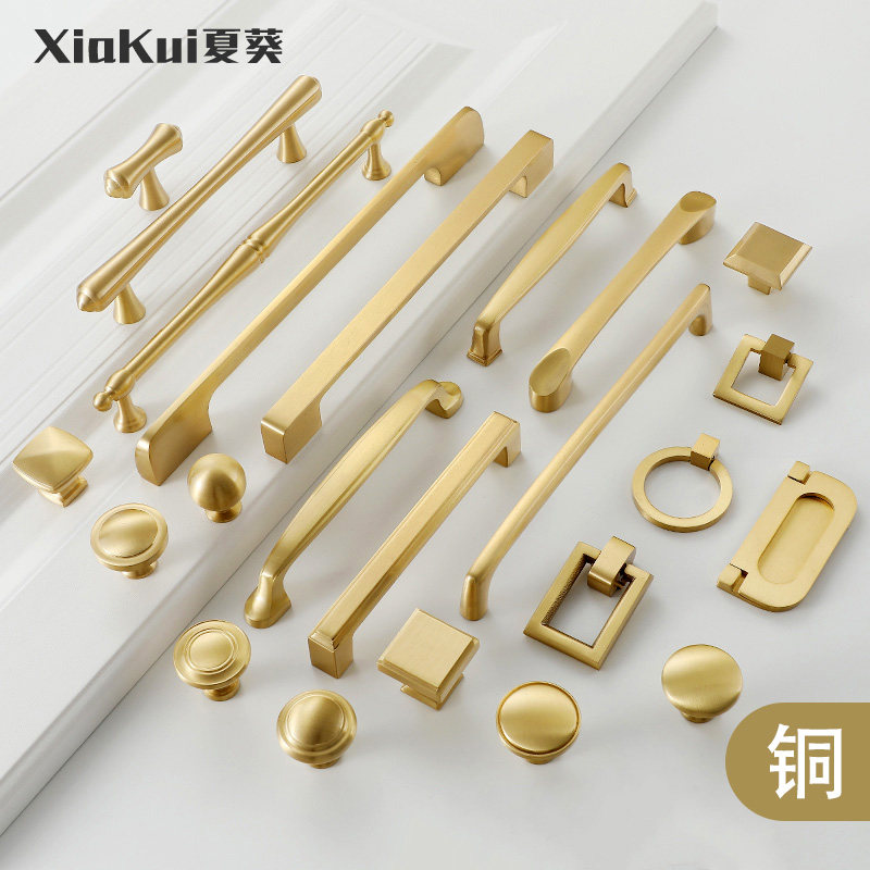 American pure copper handle Nordic modern simple all copper drawer round single hole gold light luxury brass wardrobe door handle