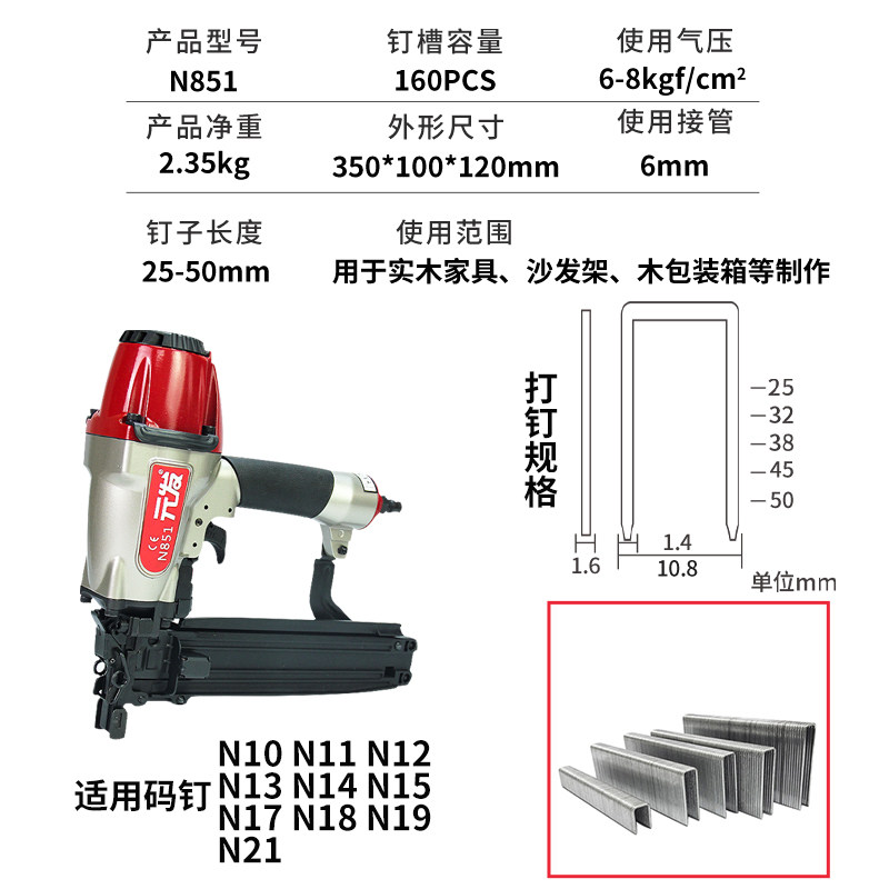 Yuan hair pneumatic code nail gun N851 yuan red and white one continuous code nail gun N851