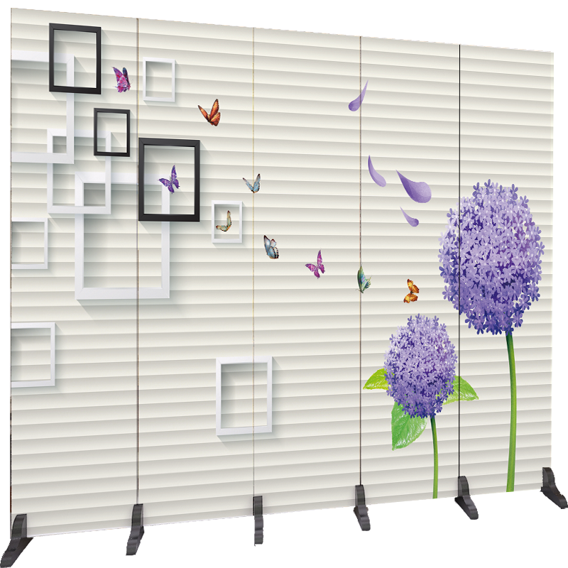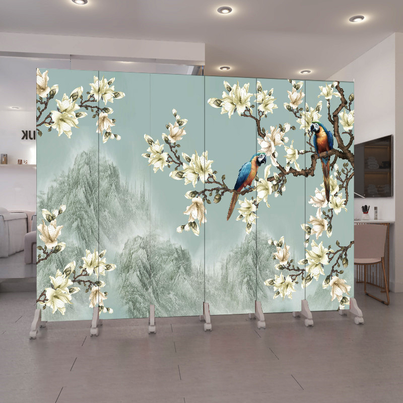 Screen partition wall simple modern rental room bedroom office mobile folding office flowers and birds folding screen