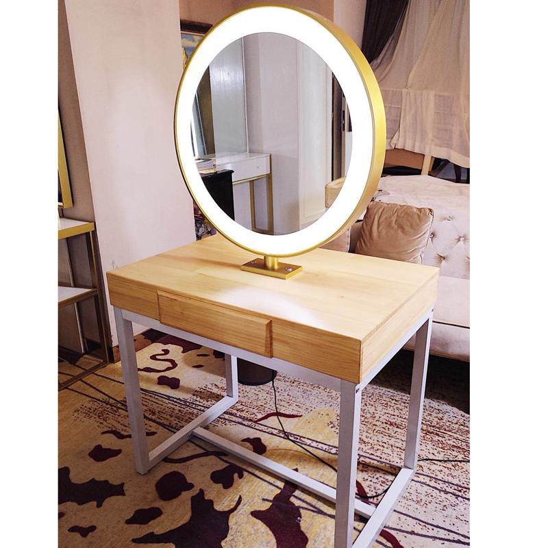 hair salon hairdresden hairdresden Nordic single-sided with lamp mirror retro solid wood haircut mirror with LED lamp haircut mirror