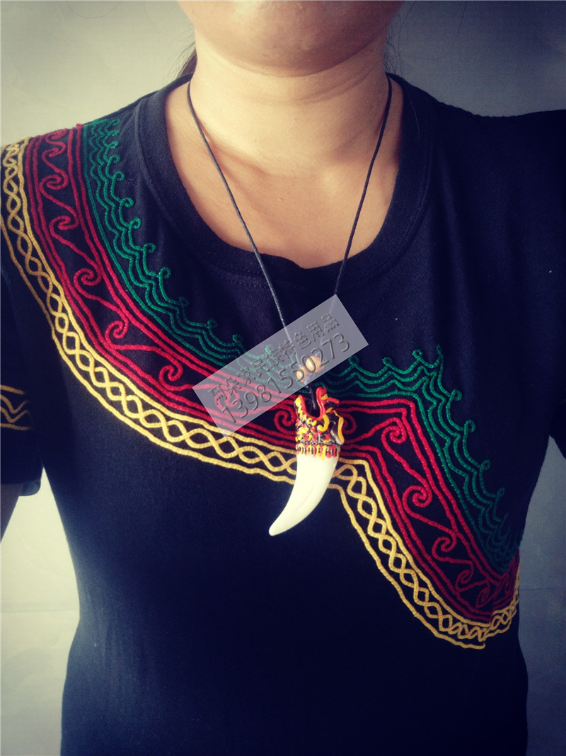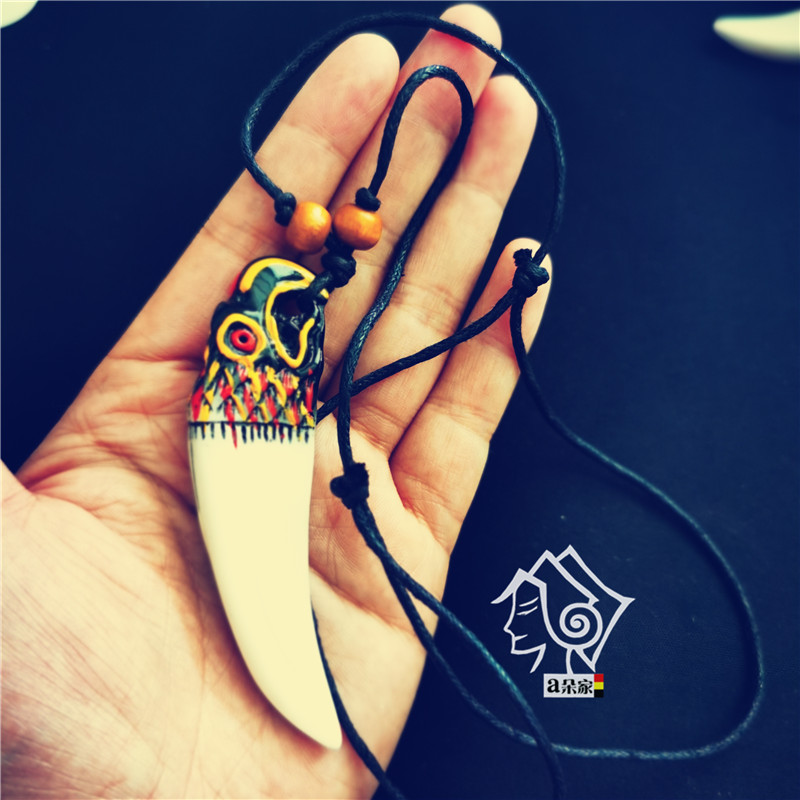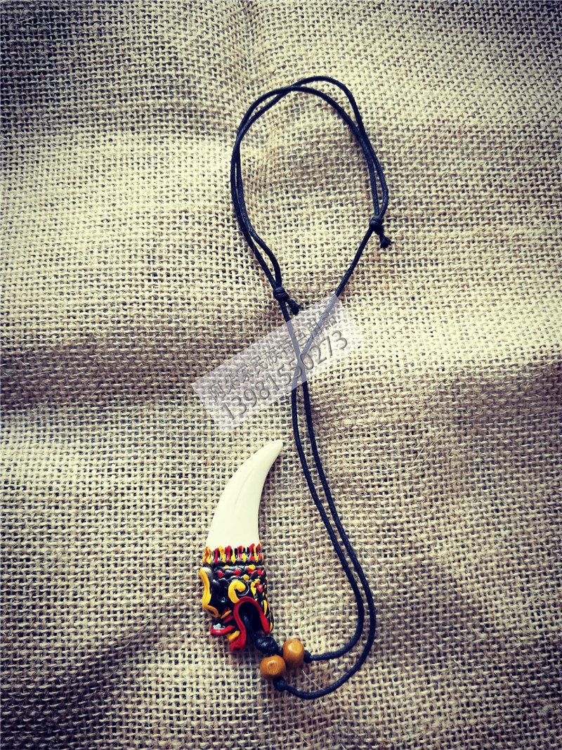 A Duo Family Ethnic Characteristics Sichuan Liangshan Yi Necklace Male Retro Dragon Head Animal White Teeth Resin Decoration