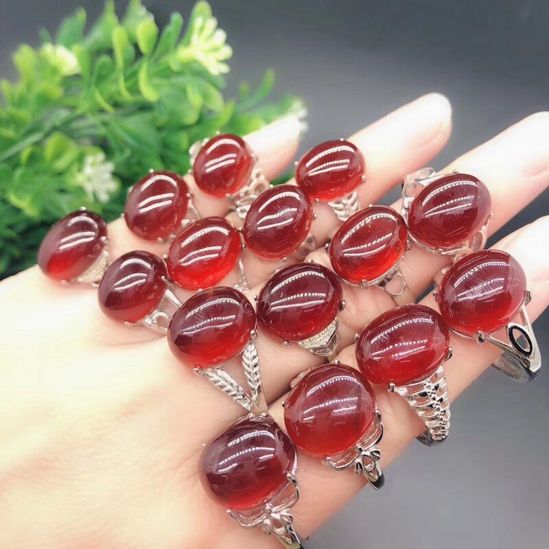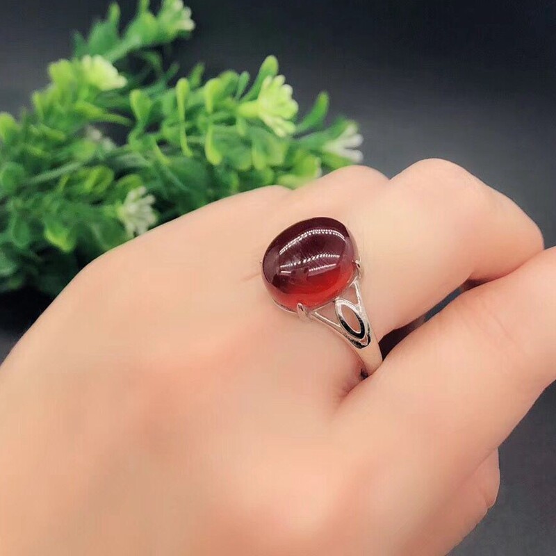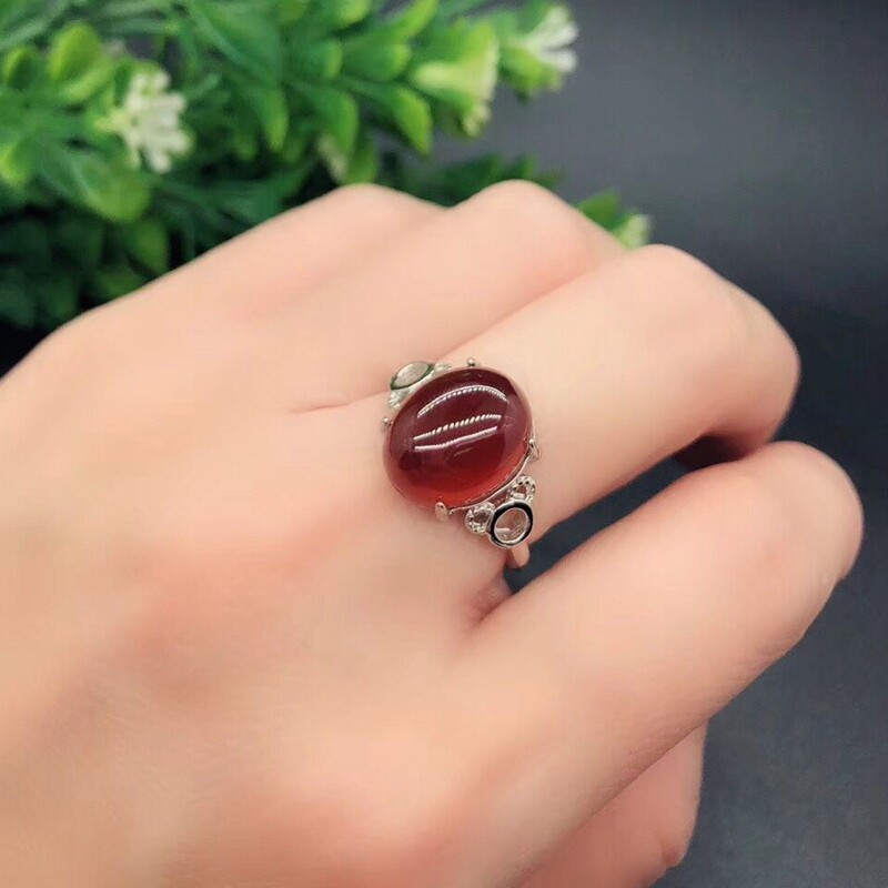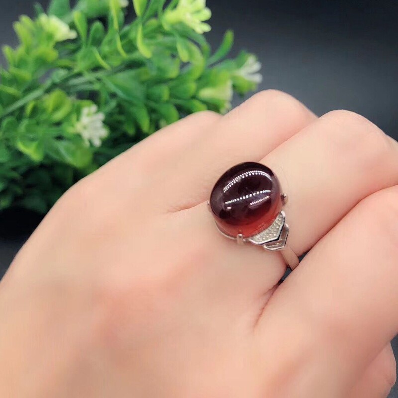 Natural garnet ring women's and women's money to ward off evil red garnet open ring