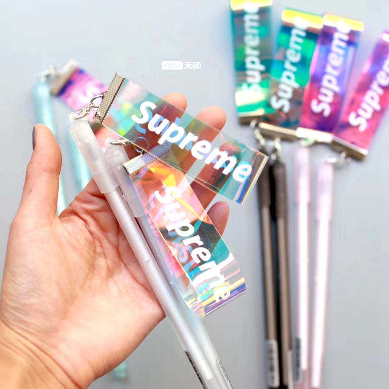 creative stationery supreme floating strap pendant neutral pen simple black and white water pen student autograph pen black 0 5