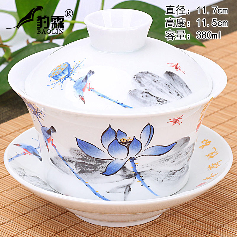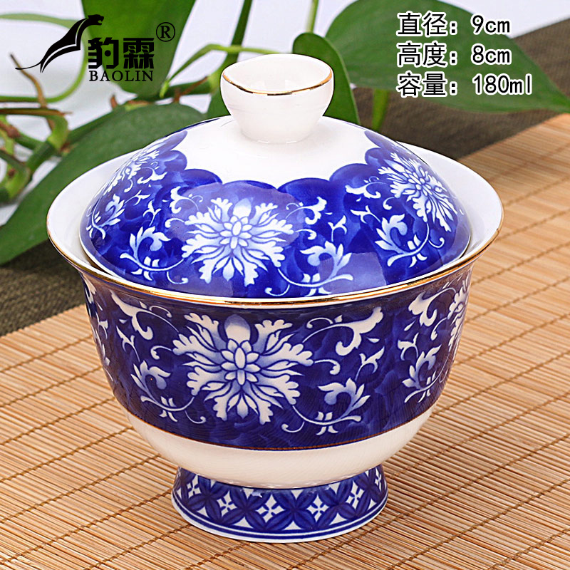 Gai Bowl Large-Pinyue Lotus Fragrant Cover Bowl Large-Gold Blue Barb Flower Cover Bowl Large-Gold White Bart Bowl Large-Chao Jump Cover Bowl-Pure White Cover Bowl Extra Large-Linglong Garden Rose Bowl