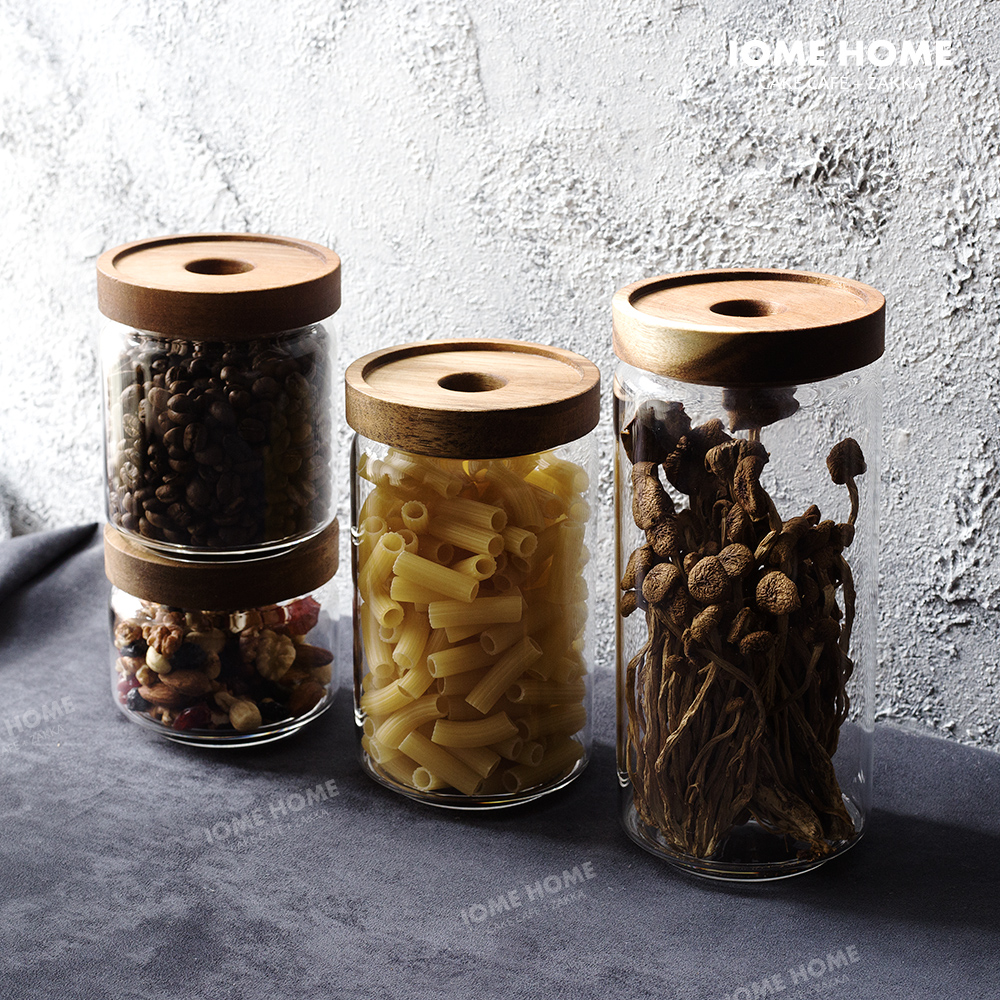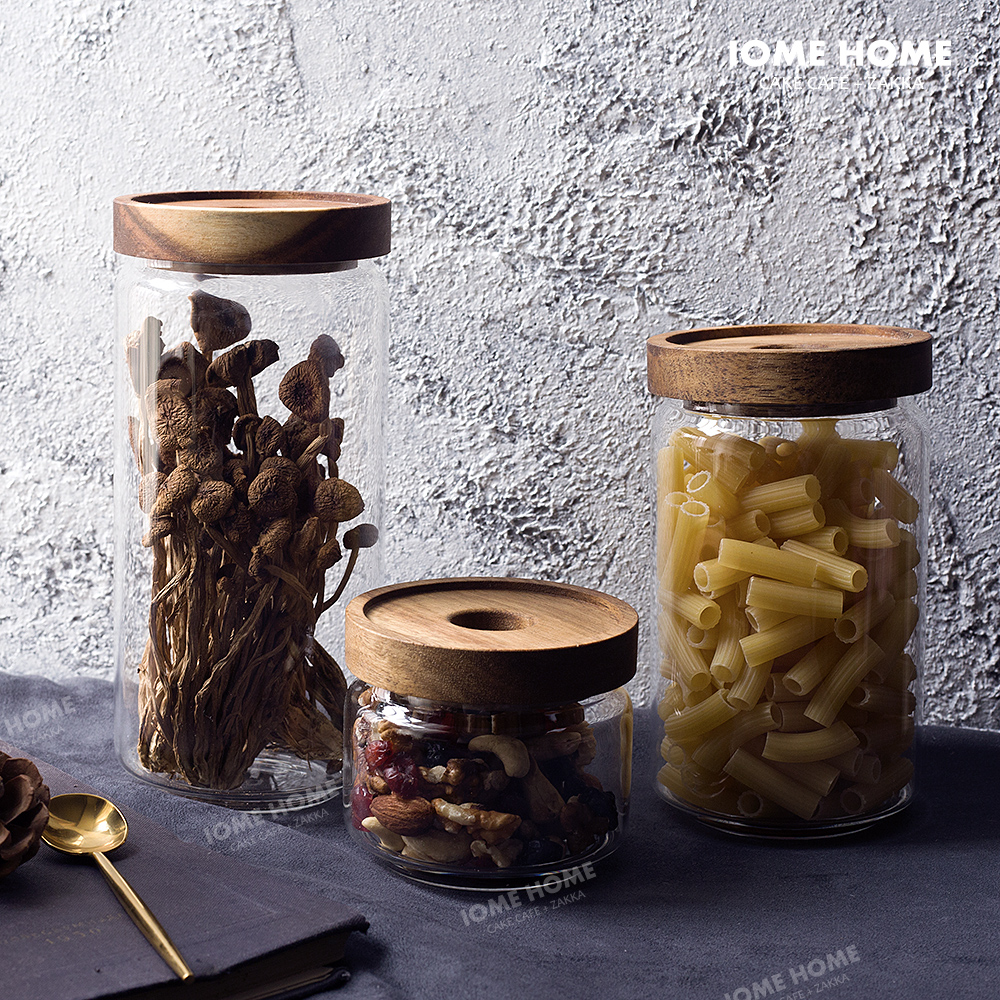 Retro Food Grade Glass Coffee Tea Seal Pot Sywood Lid Miscellaneous Cereals Spaghetti Storage Storage Tank