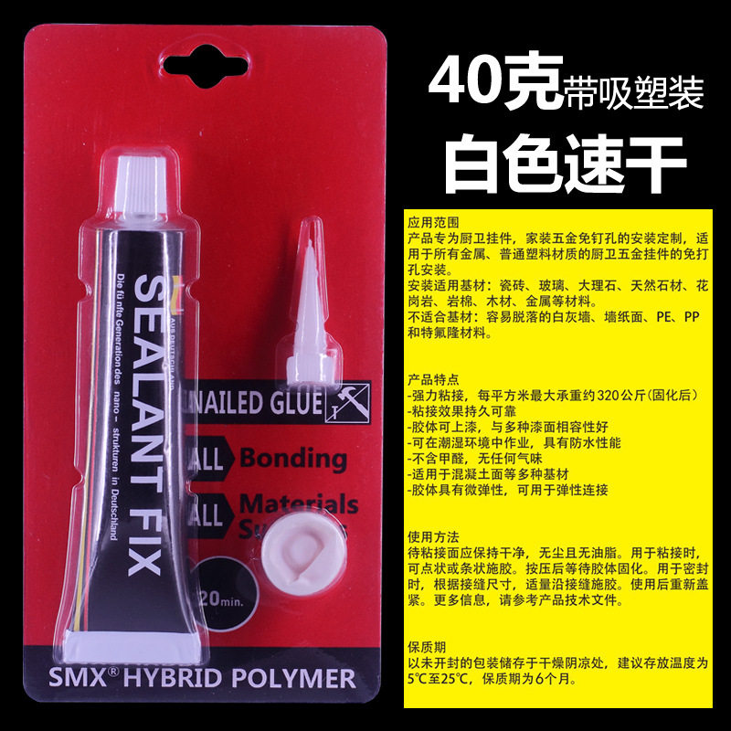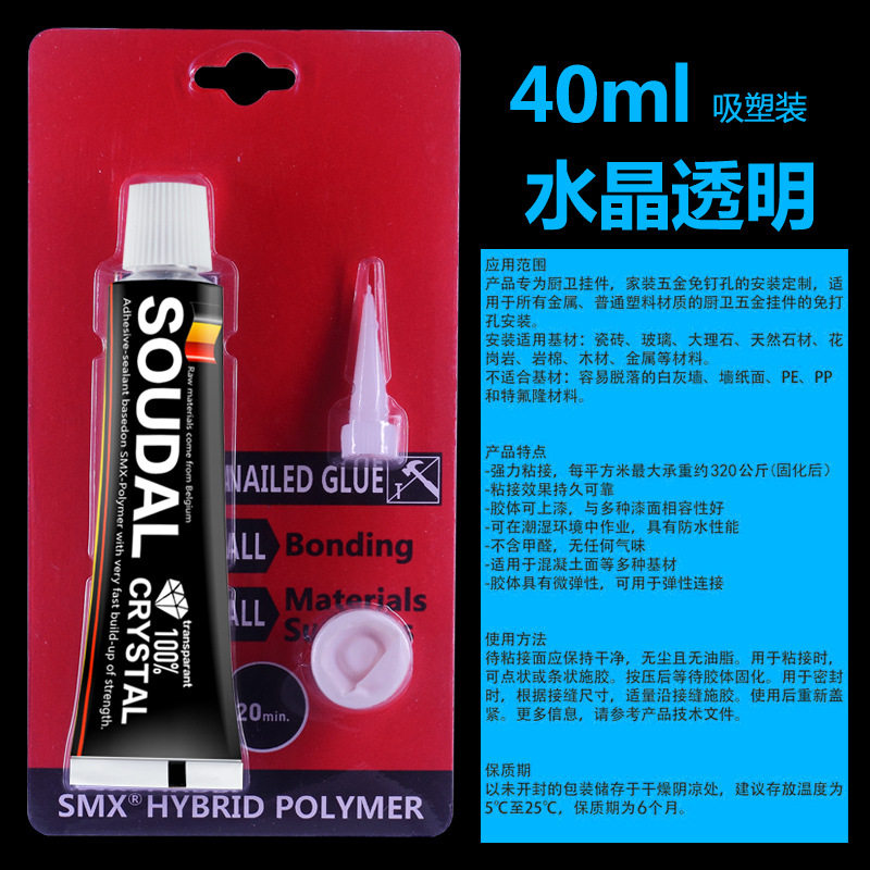 Imported transparent nail-free tile clothes clothes rod non-perforated stainless steel door suction metal strength than nail glue 40ml