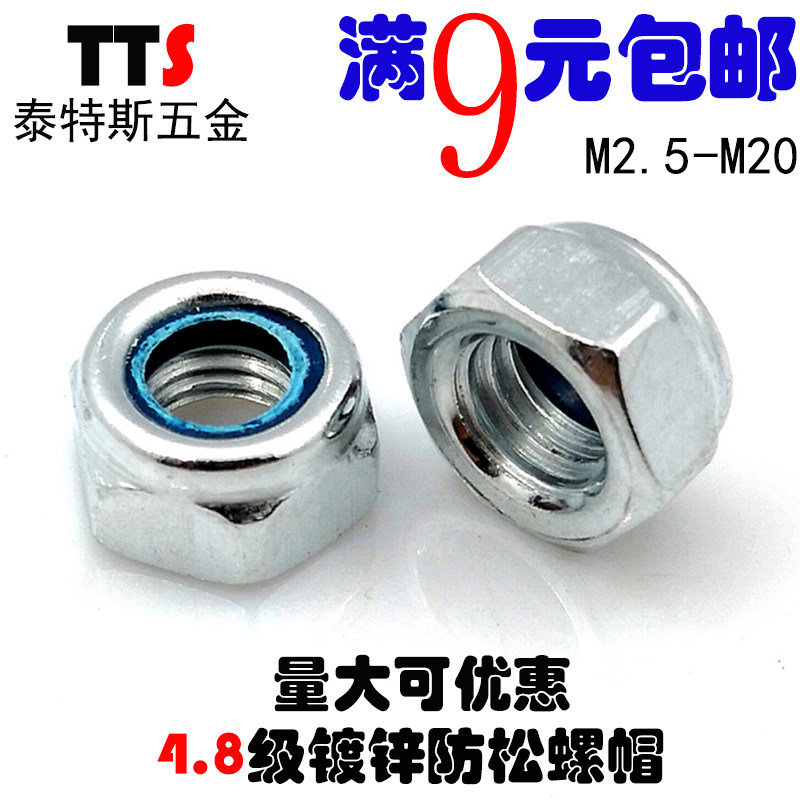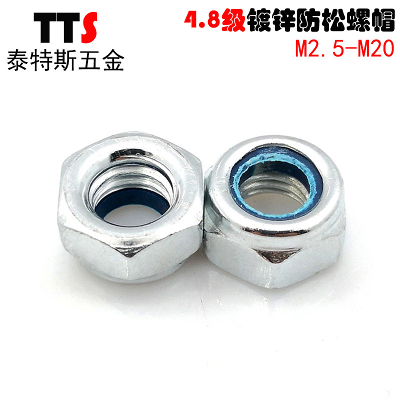 M2 5-M20 galvanized nylon anti-loose hex nut screw cap anti-skid anti-fall locking nut self-locking nut