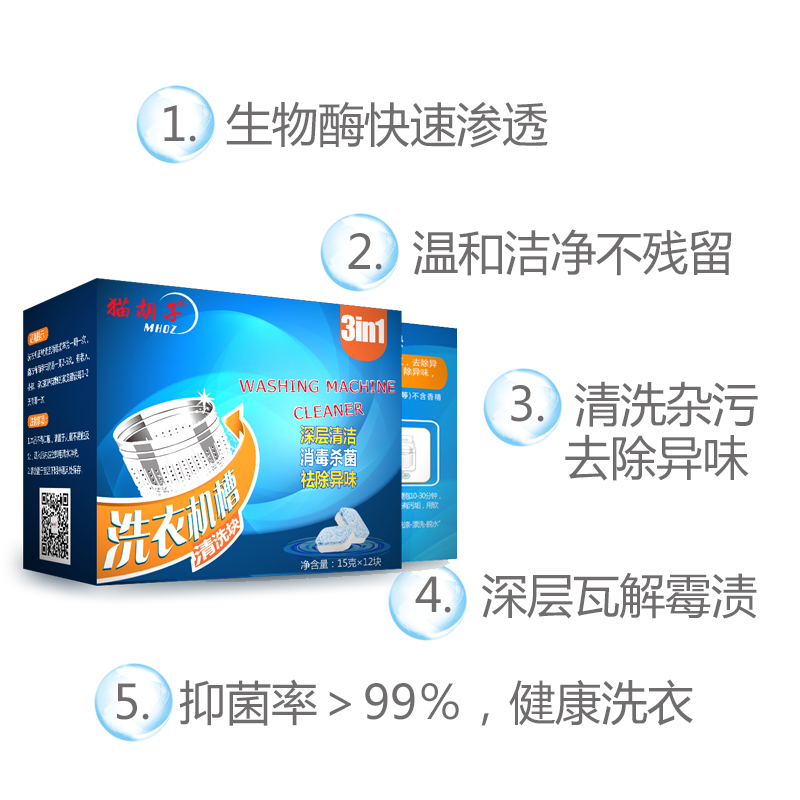 Cat beard washing machine tank cleaning agent sterilization disinfection drum automatic pulsator inner cylinder descaling effervescent cleaning block