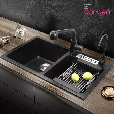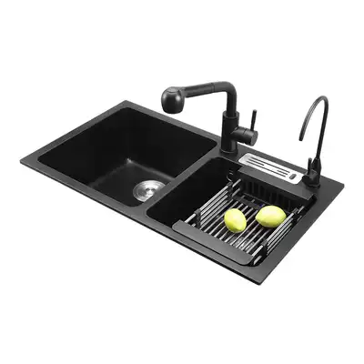 Italian sink vegetable sink Double sink Kitchen Quartz stone sink Sink sink sink with knife holder Black