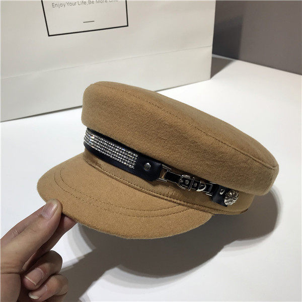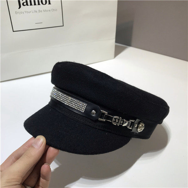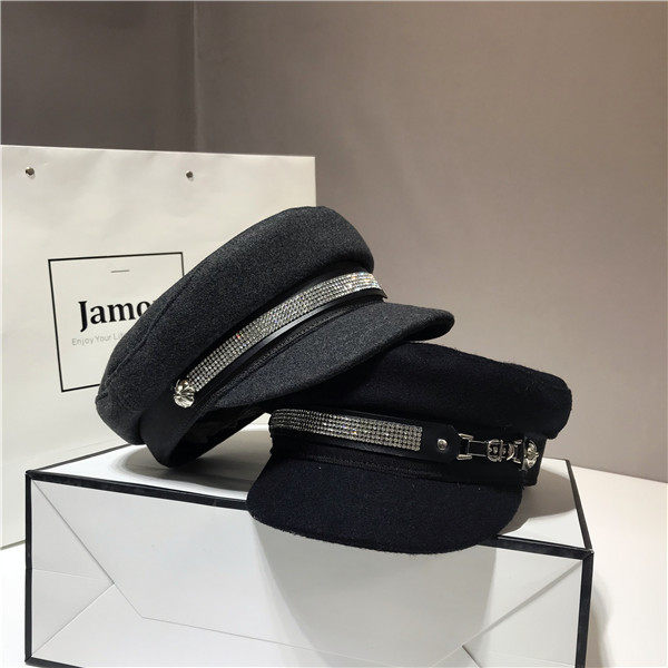 French online red Korean version of the autumn winter fur Duck Tongue Cap Children Fashion Water Drill Navy Hat Flat Top Hat 100 Lap Anise Cap-Taobao