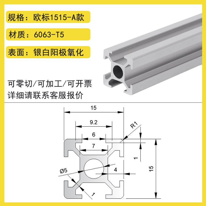 Industrial Aluminum Squeeze material 1515 Euro Pep 1515 aluminum alloy profile aluminum 1515 aluminum 3D print bracket profile