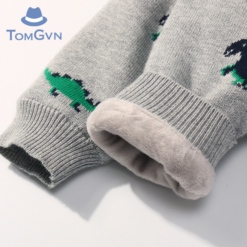 Tomgvn winter male baby velvet warm coat 0-1 years old knitted one-piece crawling clothes go out to thicken the tide of clothes