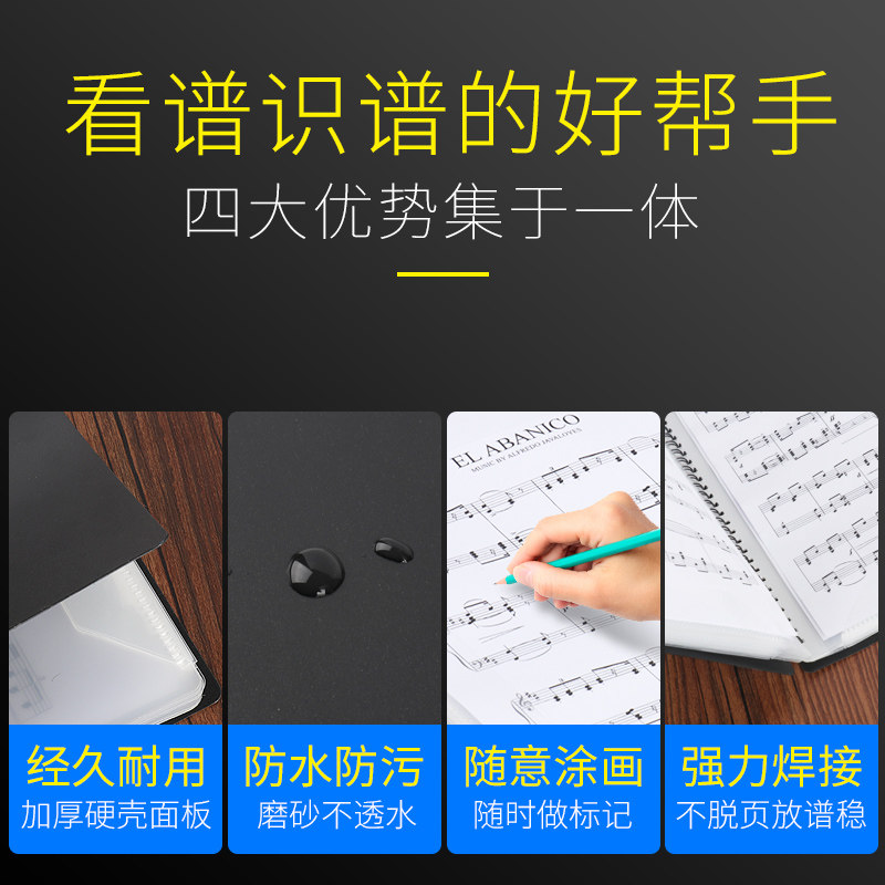 Loose-leaf detachable clip 20 pages 40 loose-leaf detachable clip 20 pages 40 songs Listening for A4 sheet music 20 sheets 40 pages Black sheet music Listening for A4 sheet music 2
