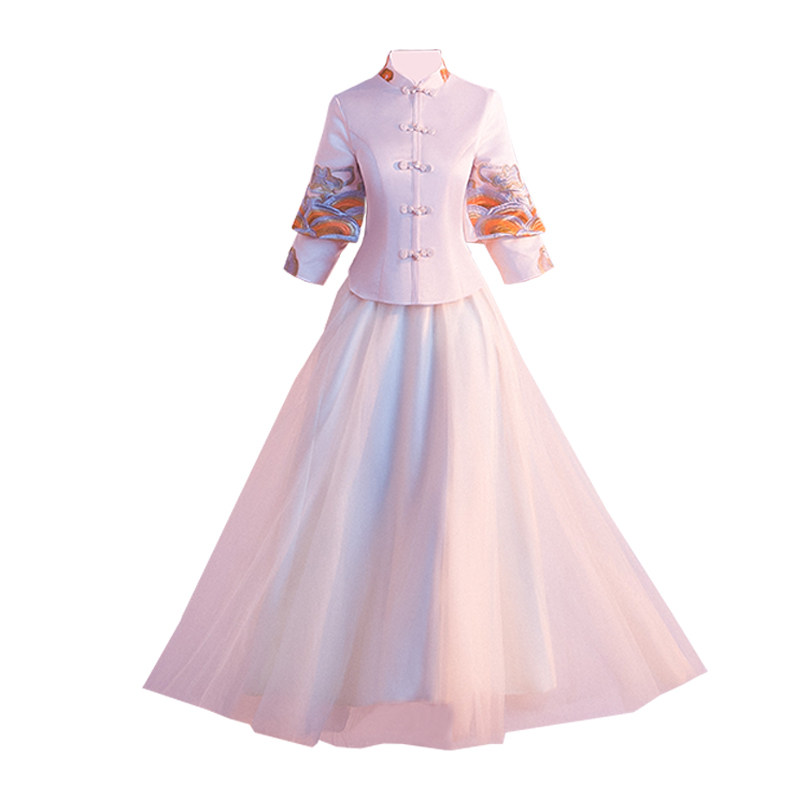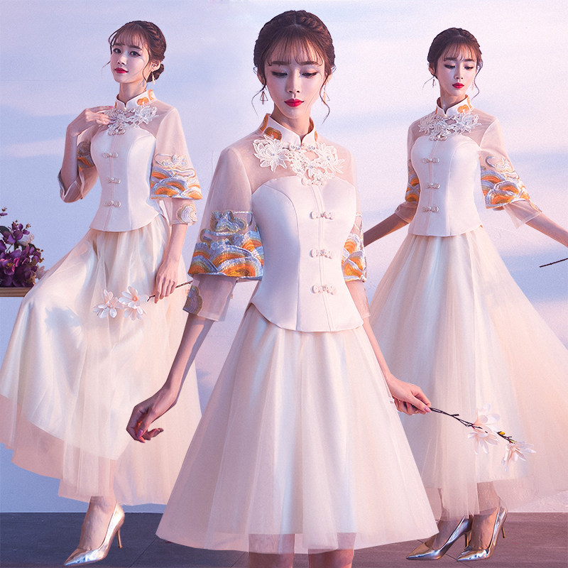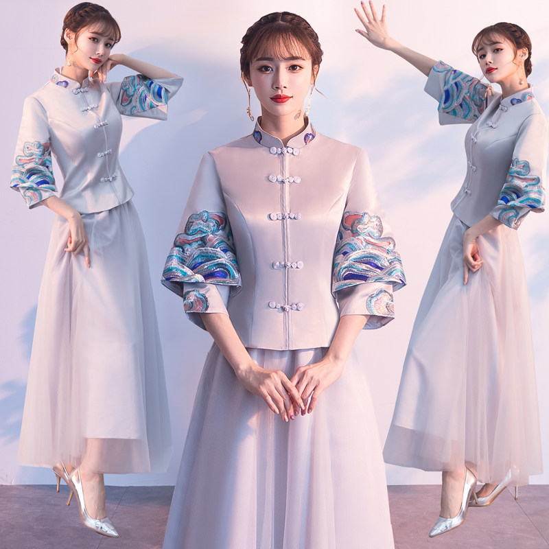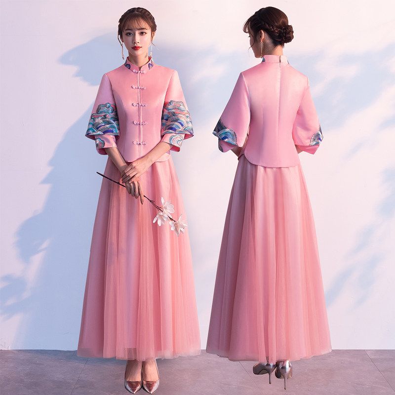 Bridesmaid dress rental Chinese style large size fat mm200 catty slim new sister group dress long sleeve Chinese style autumn and winter