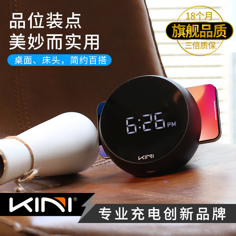 Kini Creative Multifunction Electronic Clock Wireless Charger iPhone13 Quick charging alarm clock 10W bedside desktop applicable Huawei 12 Xiaomi Samsung OPPO Apple X11Pro mobile phone