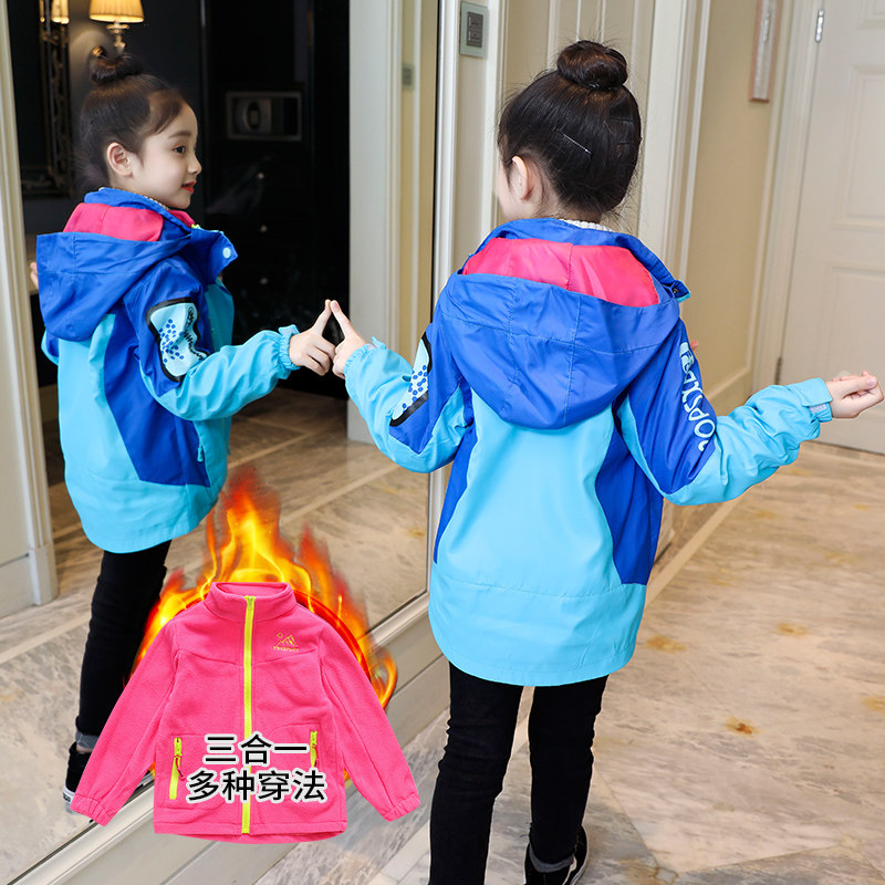 Girl Assault Kit Three-in-one Detachable Child Plus Suede Winter Coat 2020 New Foreign Pie Girl Two Sets