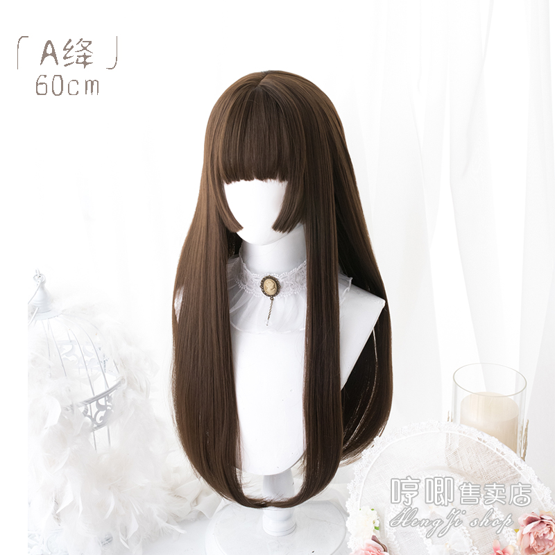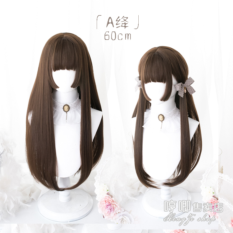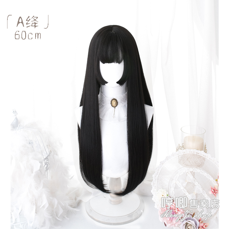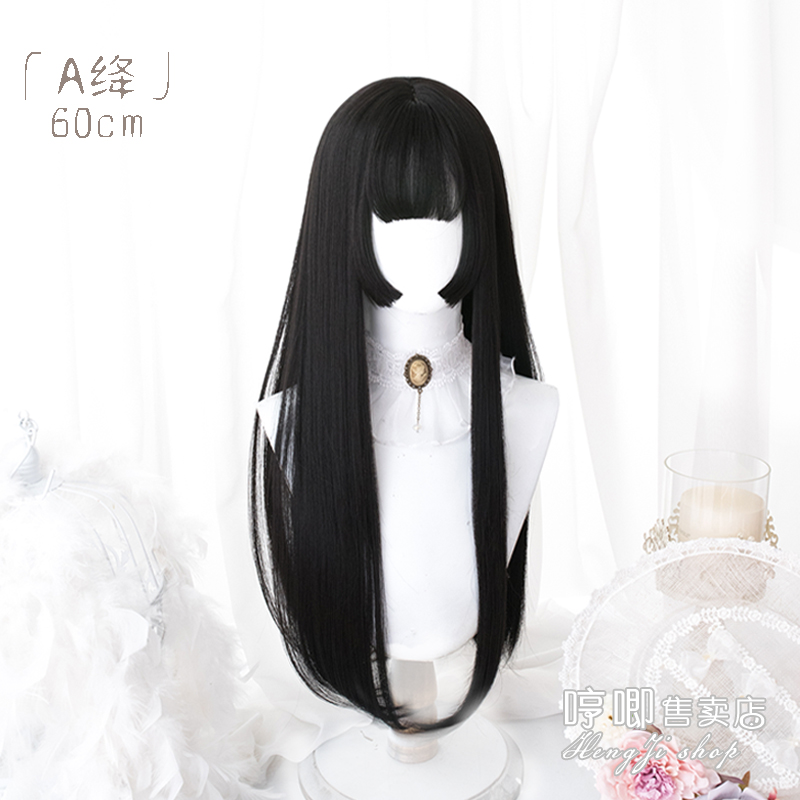 Humming home Lolita Original Cebu "A Jiang" 60cm Black long straight dresses Twin Mawei Woman Roleta Wig