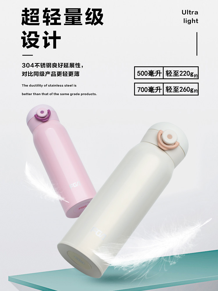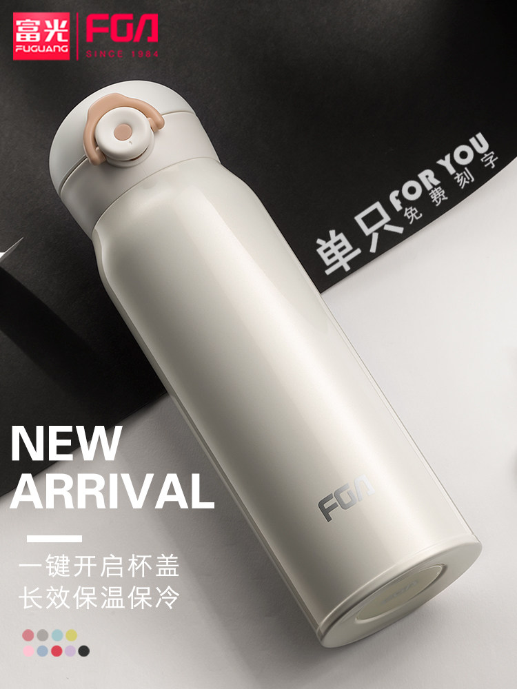 Fuguang thermos cup bounce cover portable simple student Korean version large-capacity fresh literary cute children's cup for men and women