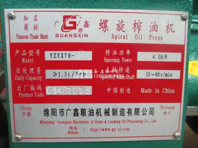 Mianyang Guangxin oil press YZYX70 screw oil press Stand-alone press 50kg of raw materials per hour small commercial